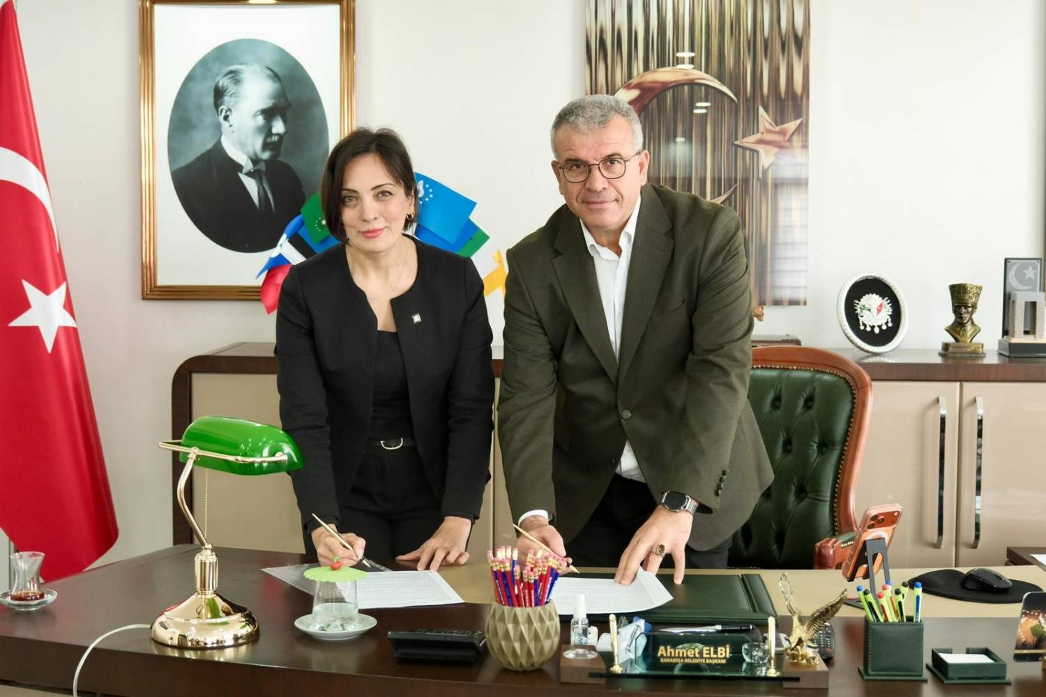 Karabiga Belediye Başkanı Ahmet Elbi, Bihaç Belediye Başkanı Elvedin Sedic ve Belediye Başkan Yardımcısı Anel Kajtezovic’i makamında misafir ederek, önemli bir görüşmeye ev sahipliği yaptı.